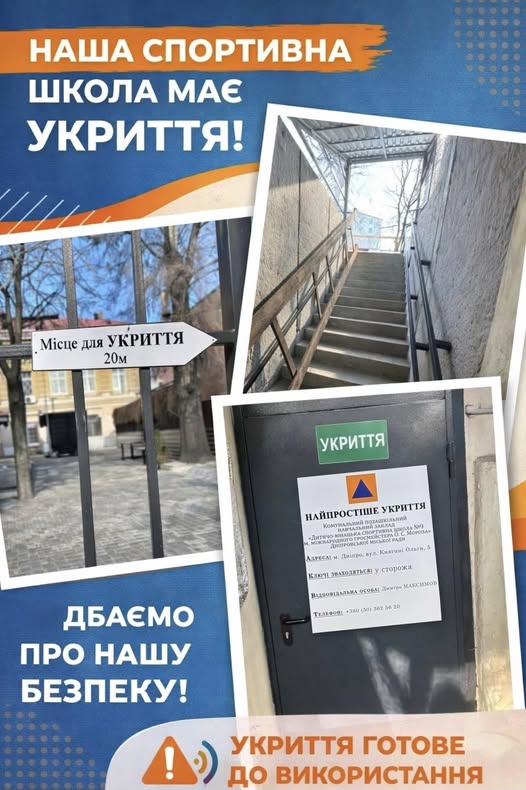 Нагадуємо, що в нашій школі за адресою вул. Княгині Ольги, 5 облаштоване найпростіше укриття. Ми робимо все можливе, щоб перебування в укритті під час повітряної тривоги було максимально безпечним та комфортним!